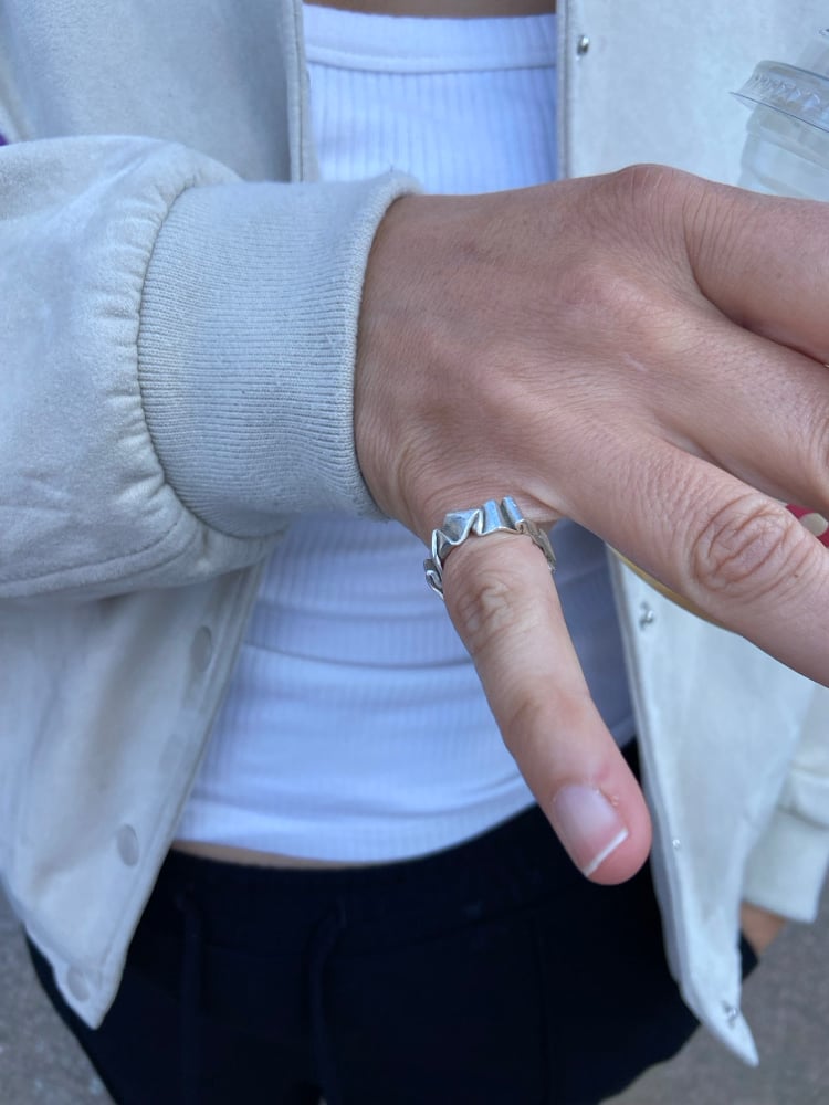 Handcrafted from high-quality recycled silver, this ring is lightweight, and versatile enough to complement any outfit, from casual everyday wear to evening elegance. Its fluid design symbolizes movement, freedom, and individuality—making it more than just an accessory, but a piece of wearable art.